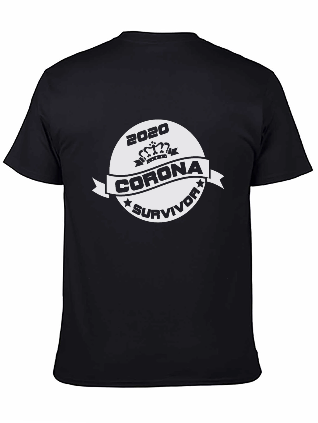 Show off your resilience with this unique "2020 Corona Survivor" t-shirt. The design features bold lettering and symbolic imagery, printed on a comfortable black fabric. Perfect for commemorating a challenging year and celebrating personal strength. Wear it casually or as a statement piece. Makes a great gift!
