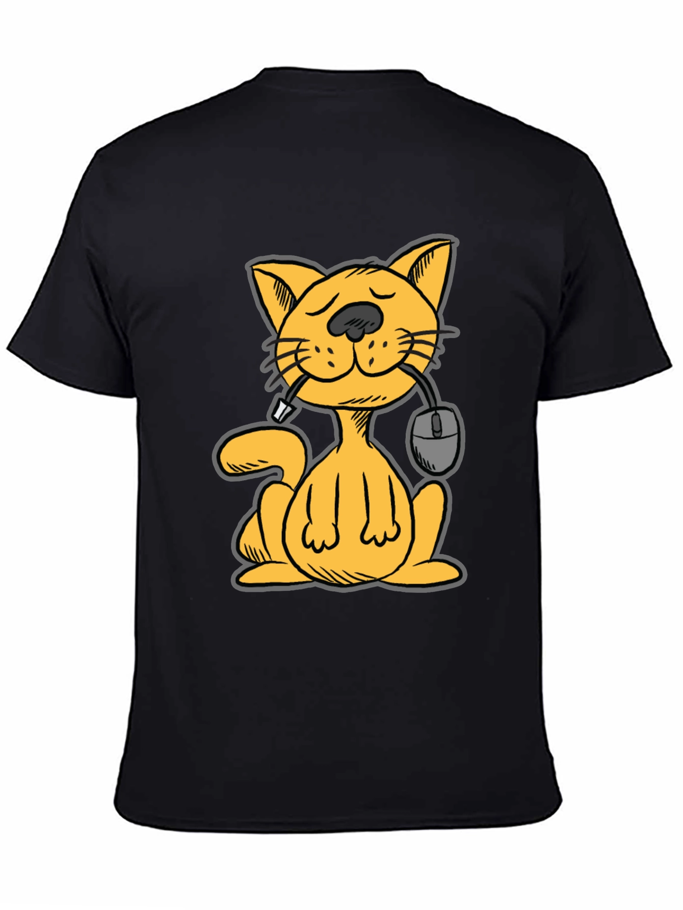 Show off your love for cats and gaming with this eye-catching graphic tee! This black cotton t-shirt features a charming cartoon cat illustration, complete with a computer mouse in its mouth. The playful design is sure to spark conversations and add a touch of humor to your wardrobe. Made from comfortable and breathable cotton, this t-shirt is perfect for casual wear, gaming sessions, or any day you want to express your unique personality. A perfect gift for cat lovers, gamers, and anyone who appreciates a fun and stylish tee!