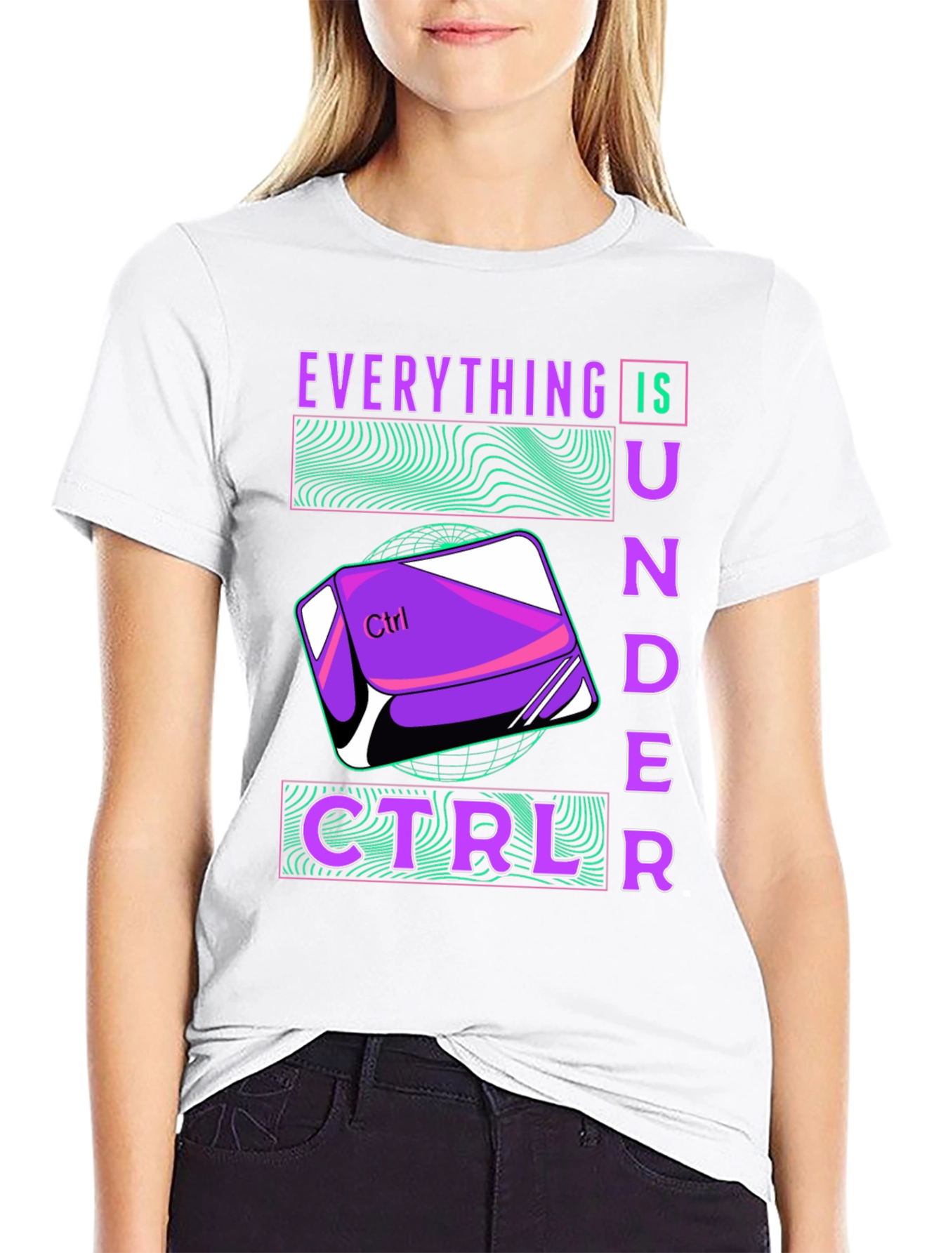 Show off your tech-savvy side with this unique black T-shirt featuring a bold and eye-catching graphic design. The shirt showcases the phrase 'Everything Is Under Ctrl' in a stylized, retro-futuristic aesthetic, complete with pixelated accents and a distinctive keyboard key motif. Made from a comfortable and breathable fabric, this T-shirt is perfect for casual wear, gaming sessions, or coding marathons. Express your love for all things digital with this standout piece that's sure to spark conversation and turn heads. Great gift idea for programmers, tech enthusiasts, or anyone who appreciates a cool and geeky fashion statement.