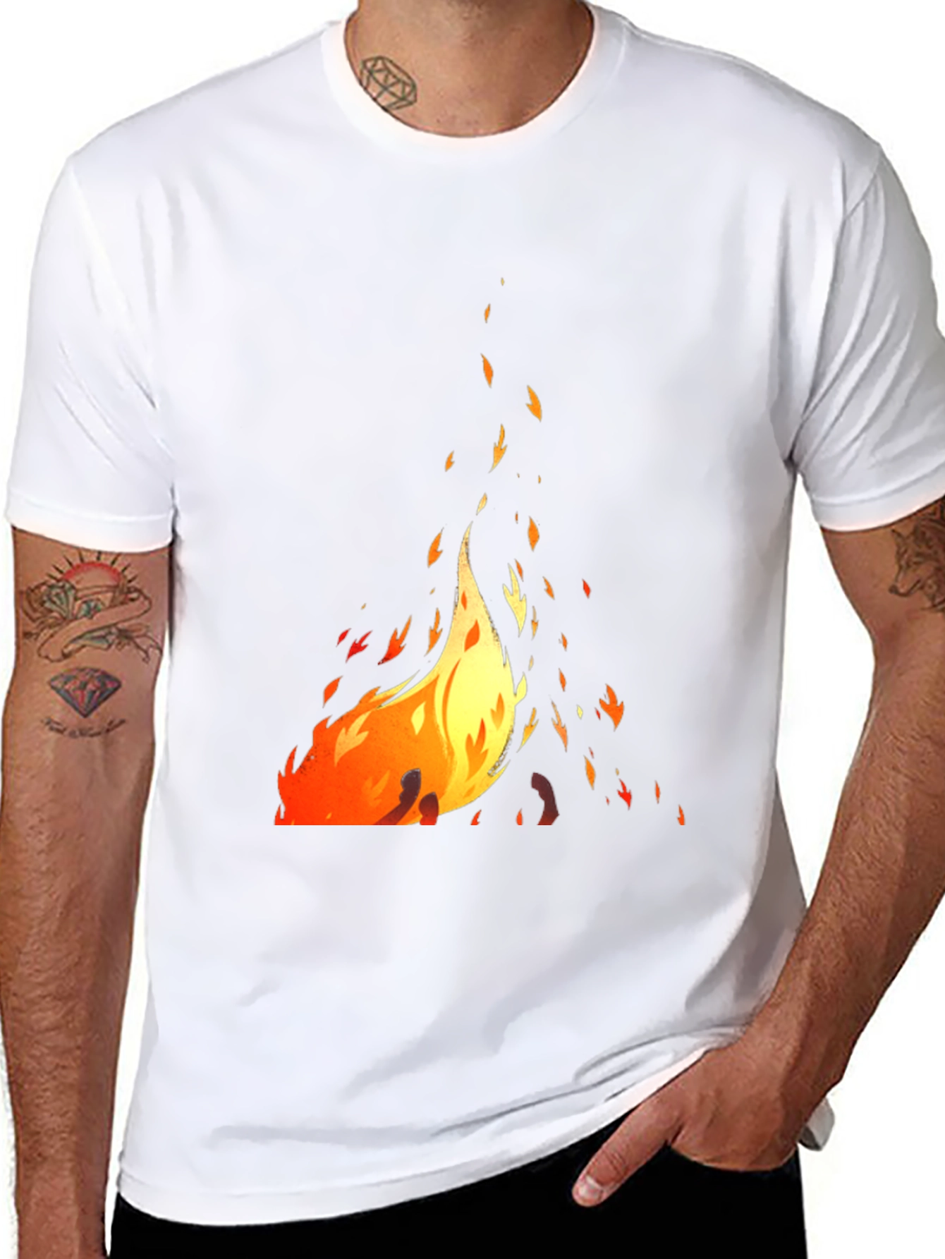Ignite your style with this striking black t-shirt. The bold, stylized fire graphic commands attention, featuring vibrant oranges, yellows, and reds. Perfect for casual outings, concerts, or adding an edgy touch to your everyday wardrobe. Made from comfortable materials, this tee ensures both style and wearability. Stand out from the crowd and express your unique personality with this statement piece.