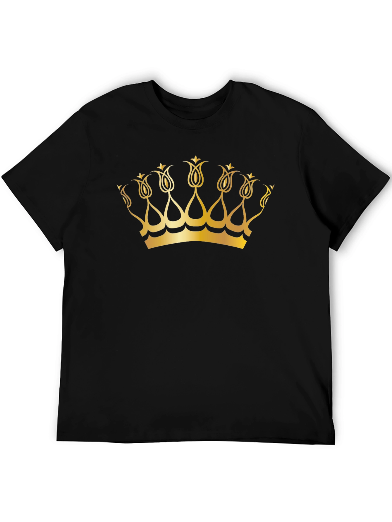 Elevate your style with this striking black t-shirt, featuring a bold golden crown graphic. The regal design adds a touch of luxury and sophistication to your casual wear. Made from comfortable materials, this tee is perfect for everyday wear, whether you're hitting the streets or relaxing at home. The eye-catching crown design is sure to turn heads and make a statement. Pair this t-shirt with your favorite jeans or shorts for a stylish, effortless look. Show off your inner royalty with this must-have wardrobe addition!