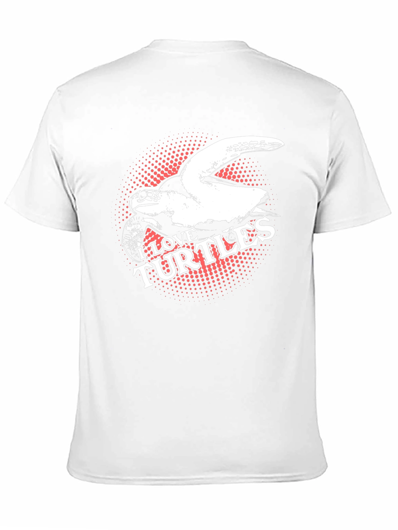 Show your love for turtles with this stylish black graphic tee! The shirt features a striking white sea turtle design, overlaid with "I LOVE TURTLES" text, set against a trendy red dotted backdrop. Made from a comfortable-looking fabric, this tee is perfect for casual wear, beach trips, or any turtle enthusiast. The design offers a unique blend of nature-inspired artistry and modern flair. Wear this tee to express your passion for marine life and spark conversations.