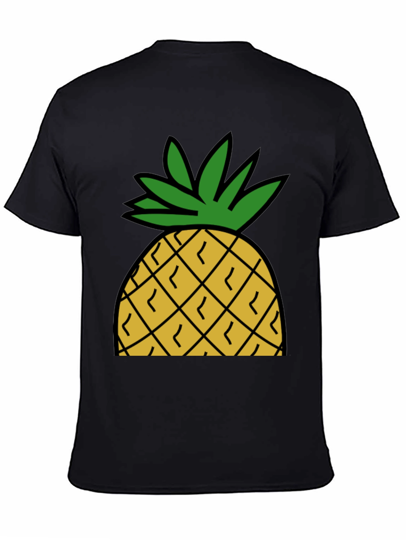 Embrace tropical vibes with this eye-catching black tee featuring a vibrant pineapple graphic. The design showcases a classic pineapple shape with detailed yellow hatching and lively green leaves at the top. This short-sleeved shirt is perfect for casual outings, summer parties, or simply adding a touch of fun to your everyday wardrobe. Made from comfortable, breathable fabric, it ensures all-day wearability. Pair it with shorts or jeans for a relaxed, stylish look. Stand out from the crowd with this unique and playful t-shirt!